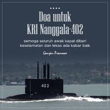 Kembali ke segmen kapal selam mini, dislitbangal tni al dan beberapa perguruan tinggi sejak beberapa tahun belakangan sudah menelurkan konsep kapal selam mini (midget submarine) di kelas 22 meter. Diketahui, kapal selam tersebut hilang kontak saat melaksanakan latihan penembakan torpedo di perairan bali dengan membawa 53 awak. Di dalamnya ada 53 orang. Berdasarkan keterangan ahli dan para mantan awak kapal selam, diyakini ini adalah barang kri nanggala, kata yugo. Harapan menyelamatkan 53 kelasi kapal selam tentera indonesia kri nanggala 402 yang hilang semakin pudar susulan bekalan.